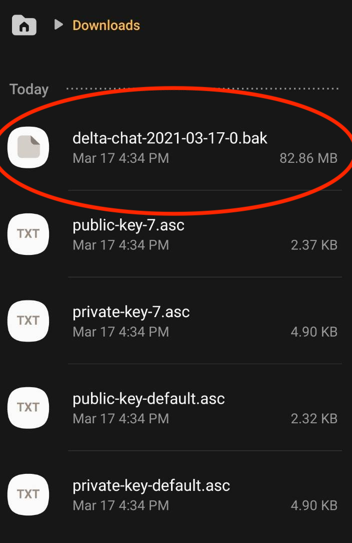 Delta.Chat exports to a ‘bak’ file with the current date